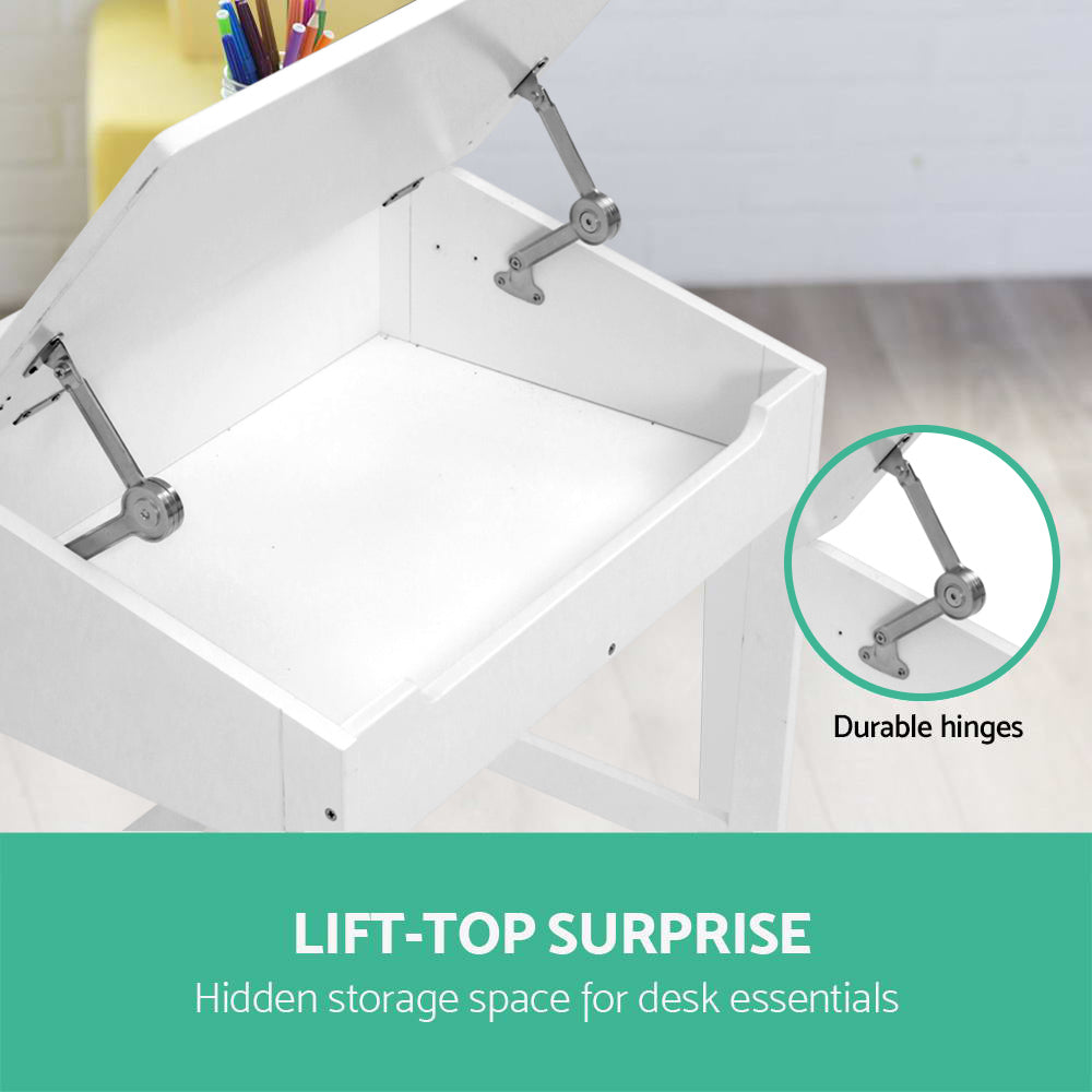 A bit of an old school charm and re-purposed for the modern era. That is what our Kids Lift-Top Desk and Stool intends to fulfill in a child?s learning environment. By providing an appropriate and fun personal desk for him or her to spend their time creatively and wisely.